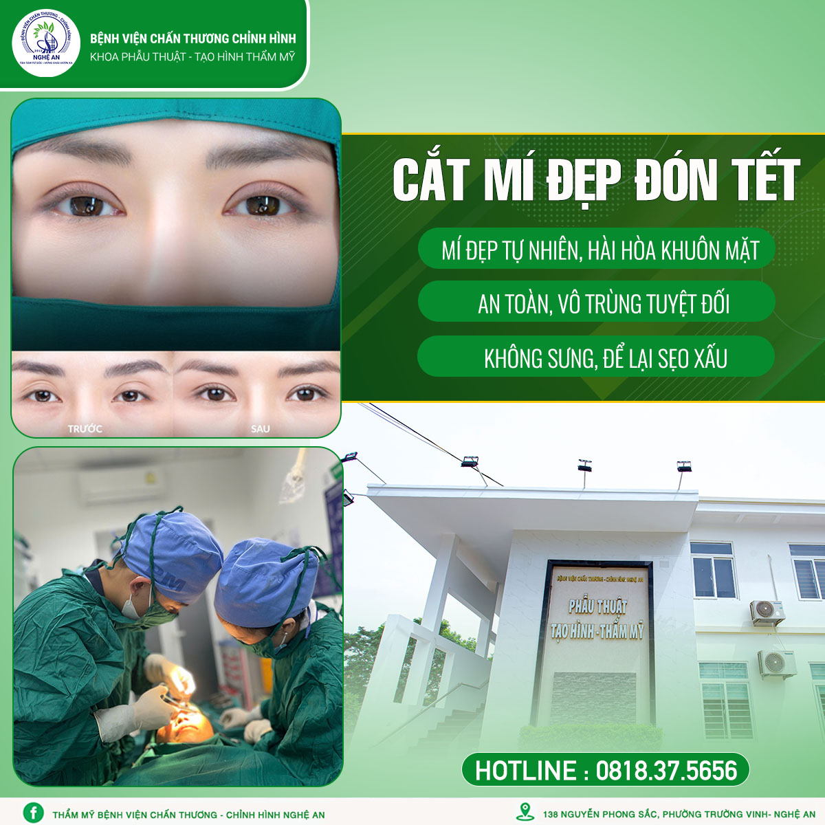 Nếu bạn đang mong muốn thay đổi diện mạo một cách nhẹ nhàng nhưng mang lại hiệu quả rõ rệt, cắt mí đẹp an toàn tại Khoa Phẫu thuật tạo hình thẩm mỹ – Bệnh viện Chấn thương chỉnh hình Nghệ An chính là lựa chọn lý tưởng để khởi đầu năm mới rạng rỡ và tràn đầy tự tin.